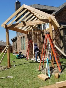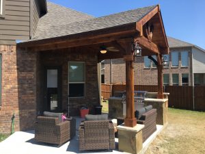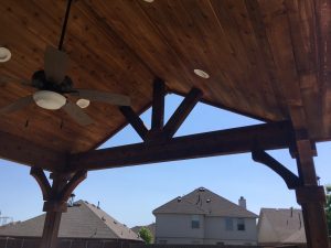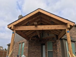 BBL designed and built an attached cedar gabled patio cover in Mckinney, TX.